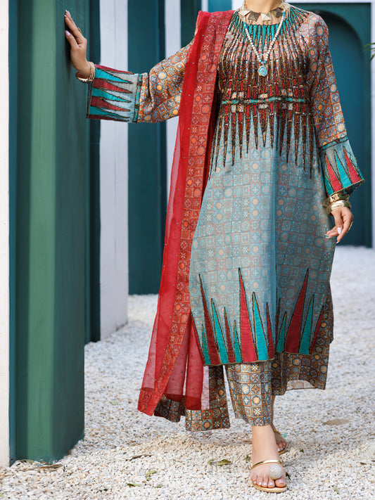 Multicolor Raw Silk Formal 3Pc Stitched - AL-3PS-LS-547