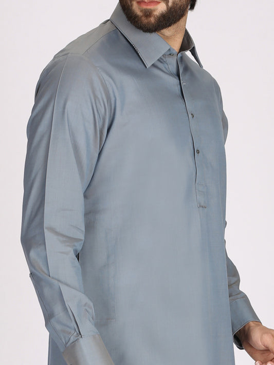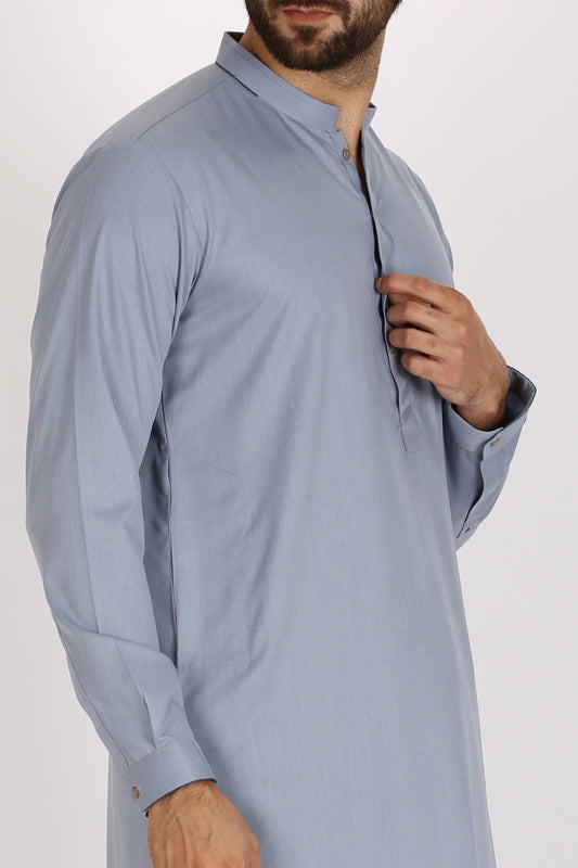 Ash Blue Cotton Kameez Shalwar - ALWA-KS-138