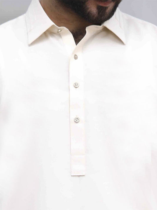Off White Cotton Kameez Shalwar - AL-KS-2354