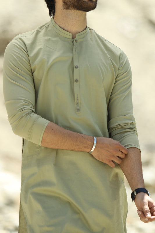 Sand Colored Kameez Shalwar - AL-KS-2359