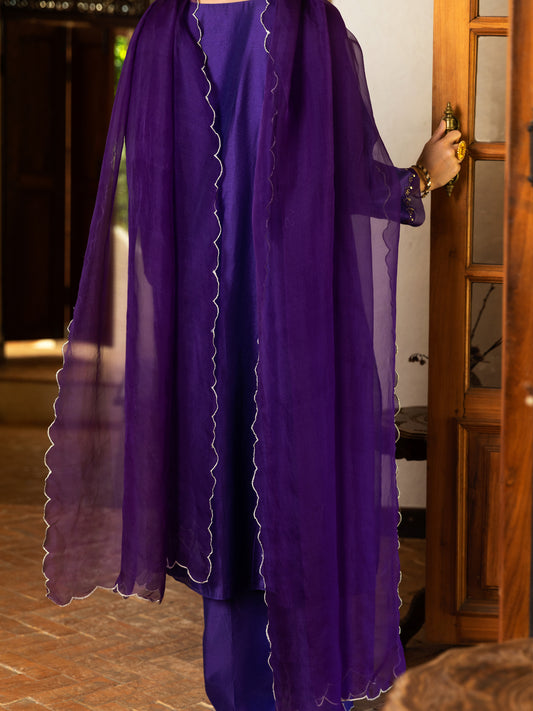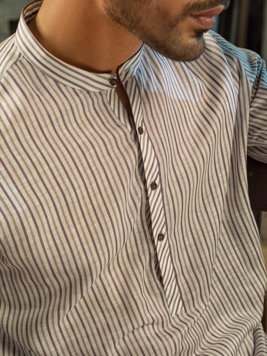 Purple Linen Short Kurta - ALCR-K-023