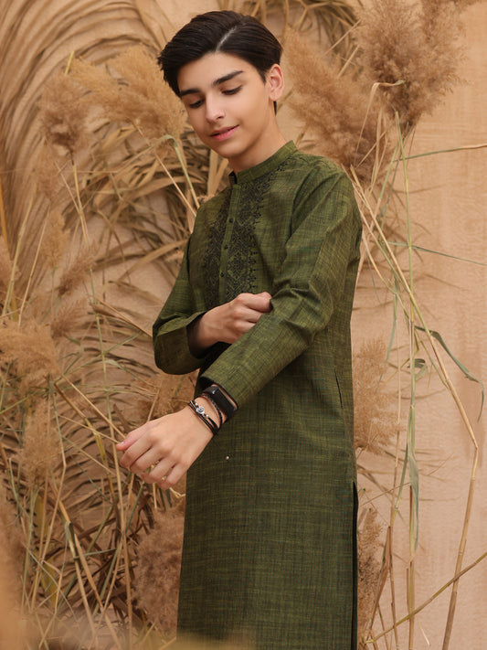 Olive Green Blended Boy Kurta - ALT-K-014
