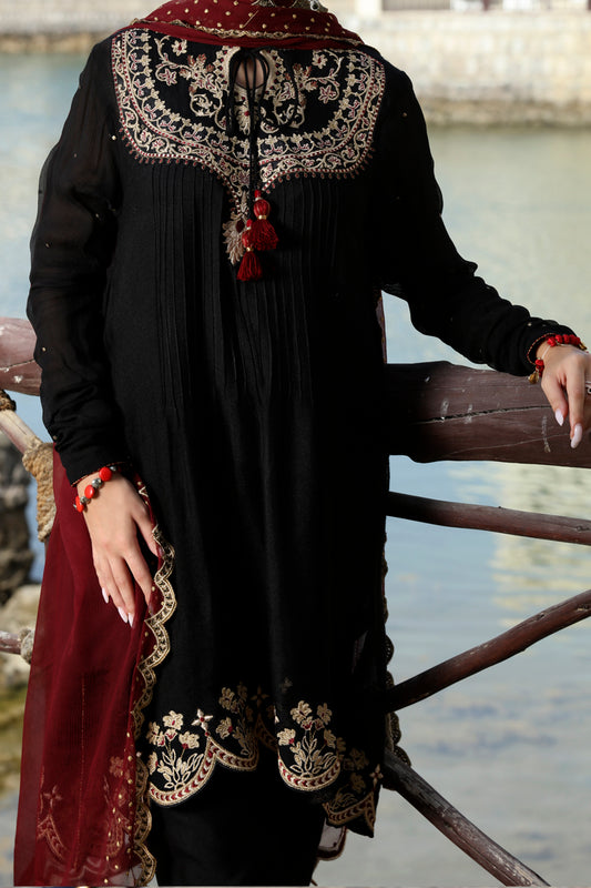Black 3Pc Unstitched - AWP-076