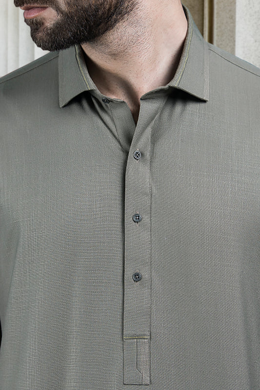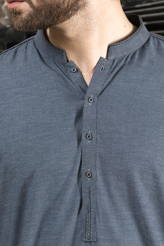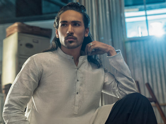 Light Grey Linen Short Kurta - ALCR-K-020