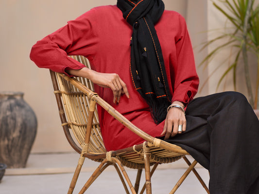 Red Hand-Woven Cotton Tunic - ALCR-LK-1011
