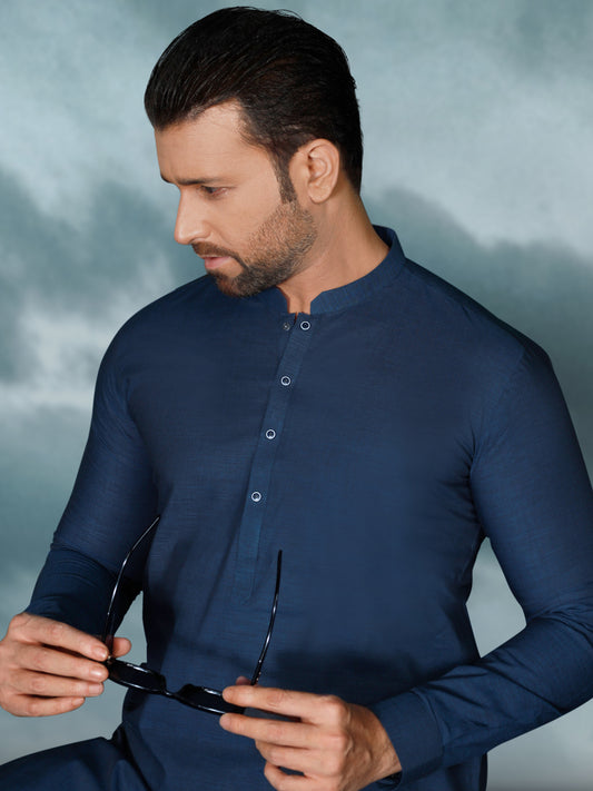 Midnight Blue Plain Kameez Shalwar - ALET-KS-1013-R4