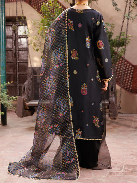 Black Paper Cotton Jacquard 3Pc Stitched - ALP-3PS-2161