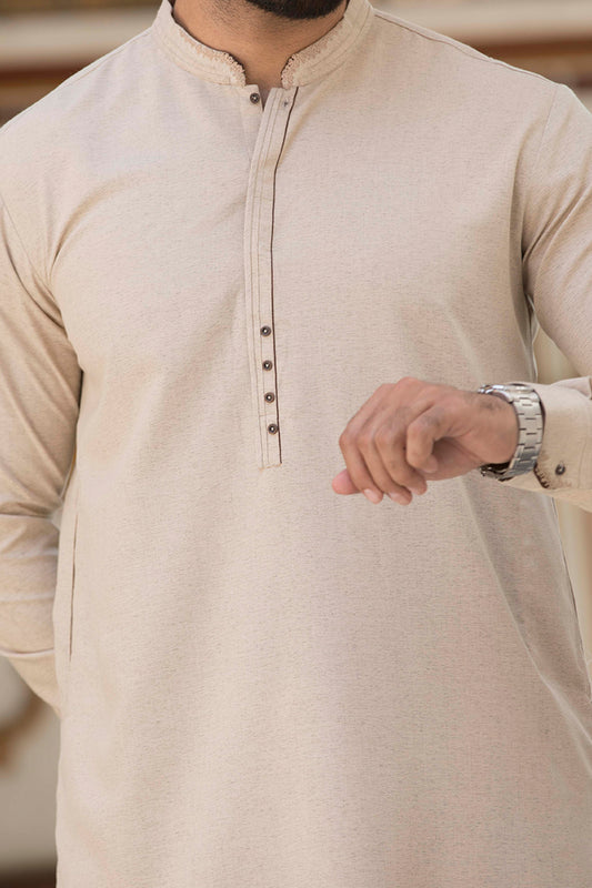 Sand Colored Blended Kameez Shalwar - AL-KS-2381