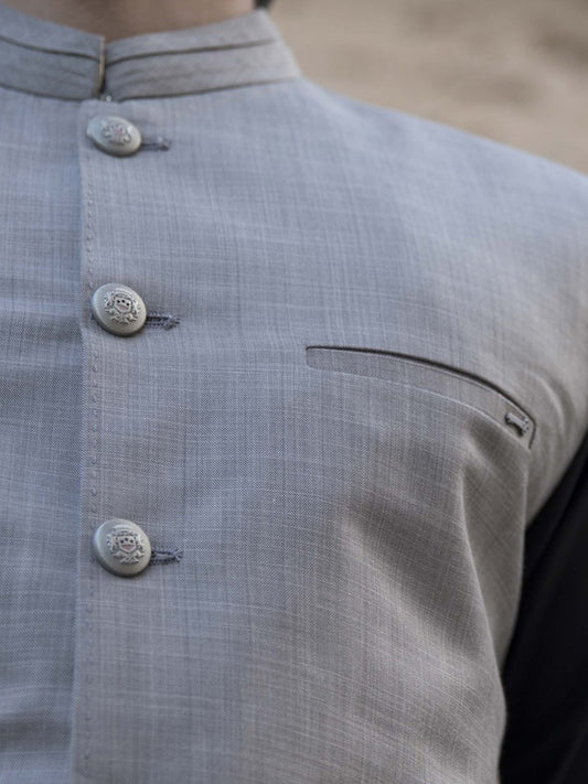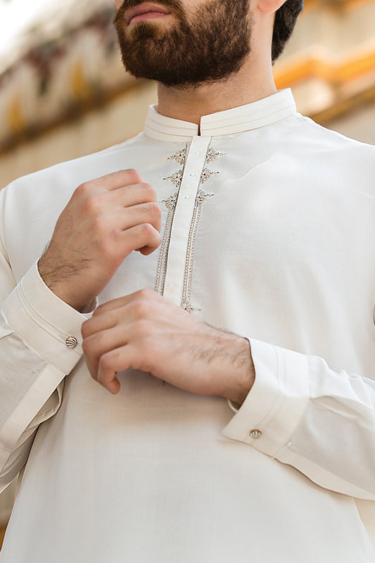 Light Grey Blended Kameez Shalwar - AL-KS-2378