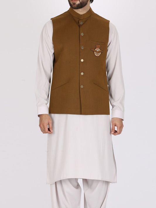 Light Brown Blended Kameez Shalwar - ALWA-KS-136