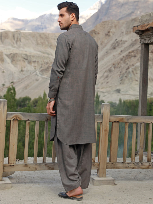 Ash Brown Blended Kameez Shalwar - ALWA-KS-310