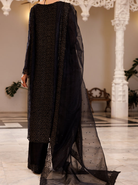 Black Poly Shiffly Formal 3Pc Stitched - AL-3PS-LS-508