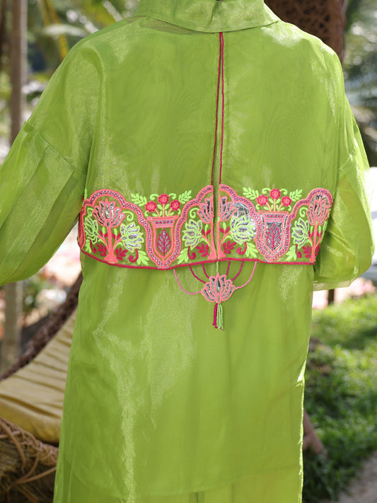 Parrot Green Shimmer Poly-Net Tunic - AL-LK-963