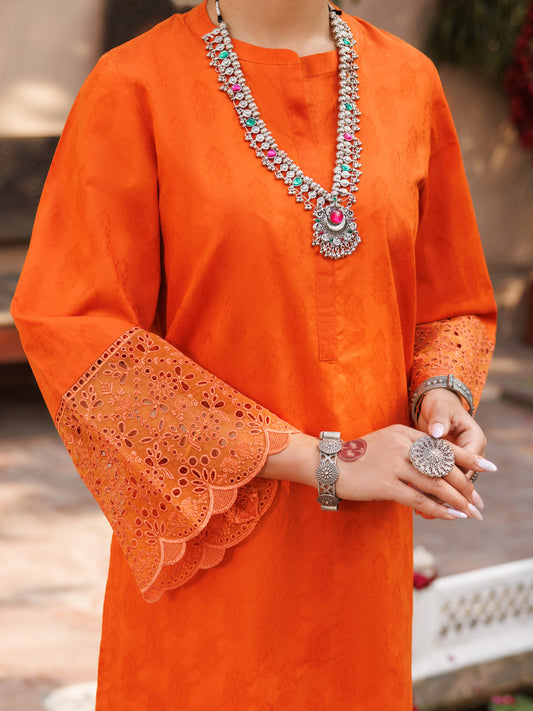 Orange Self Jacquard 2Pc Stitched - AL-2PS-LKS-1052