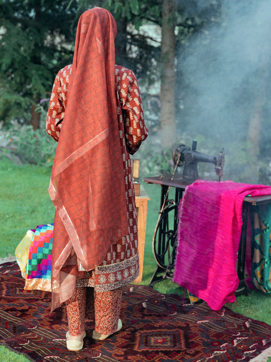 Coffee Silk Jacquard 3Pc Stitched - AWP-3PS-262