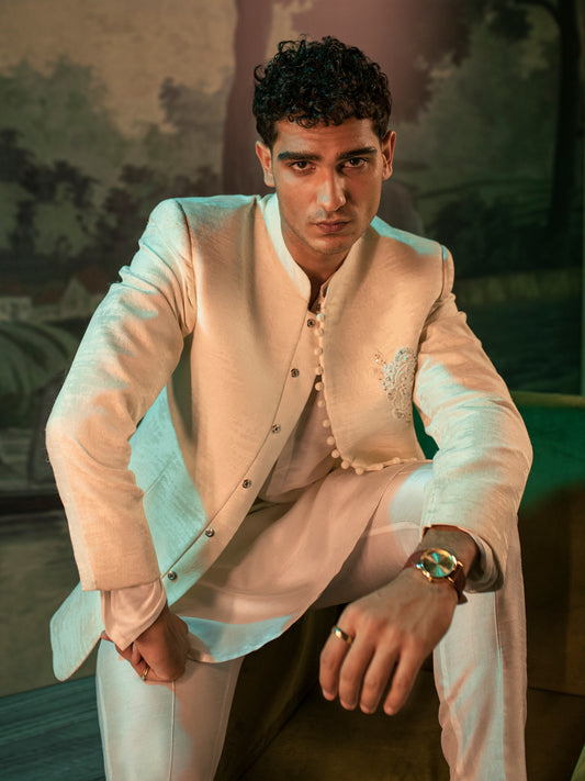 Cream Blended Men Unstitched Fabric - AL-Nizam-22