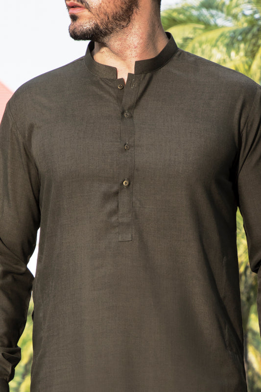 Chocolate Brown Blended Kameez Shalwar - AL-KS-2347