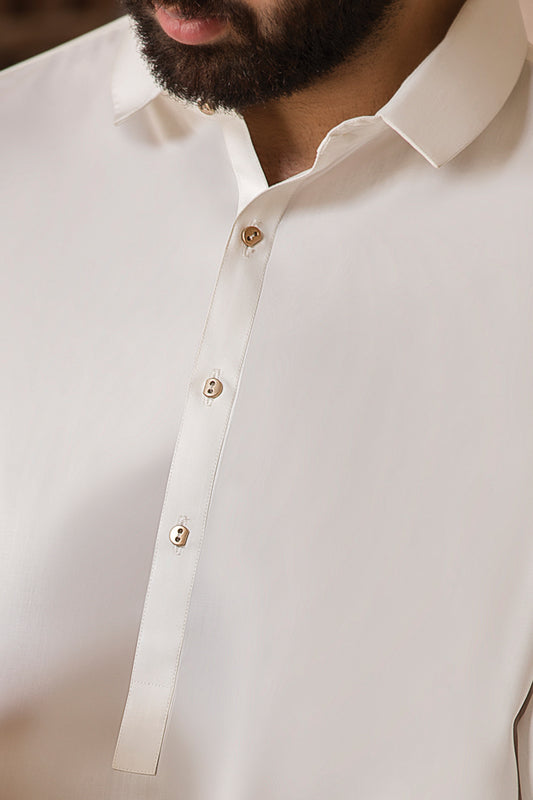 Off White Blended Kameez Shalwar - AL-KS-2418
