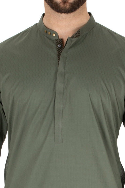 Dark Green Blended Kameez Shalwar - ALWA-KS-154