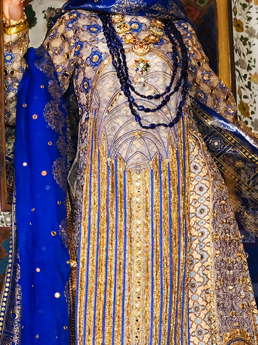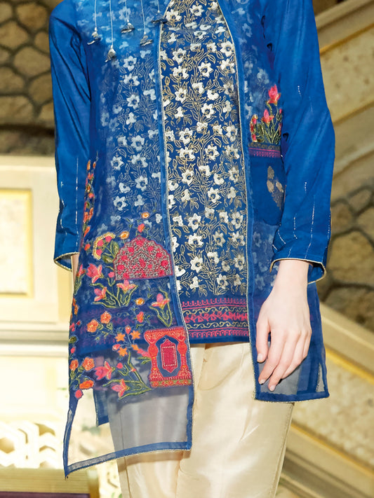 Blue Viscose Net 3 Piece Formal Suit - LS-249