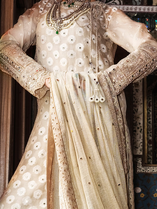 Beige Organza 3Pc Unstitched Formal - LS-UN-253