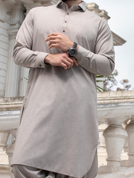 Light Brown Blended Kameez Shalwar - AL-KS-2357