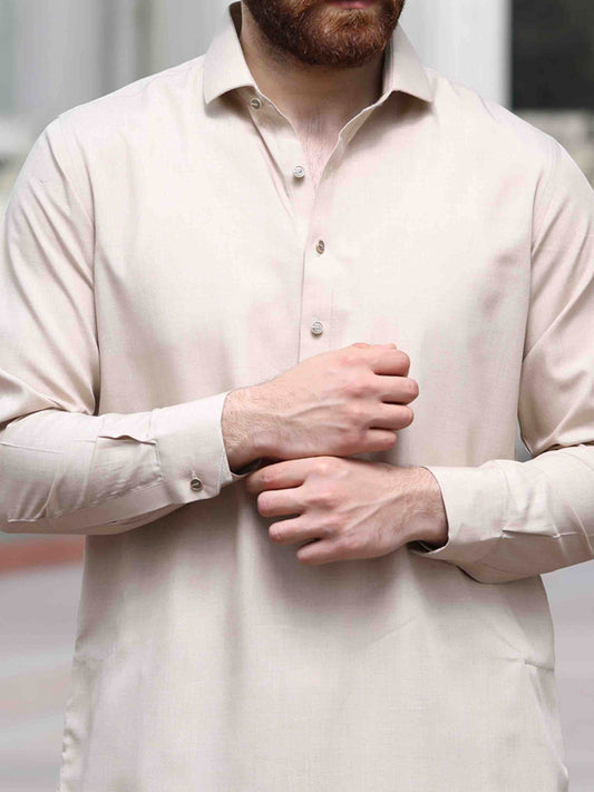 Beige Blended Kameez Shalwar - ALWA-KS-135