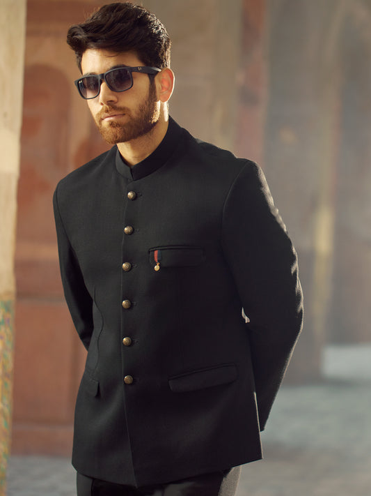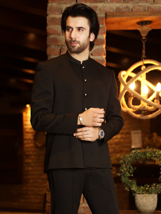 Black Textured Prince Coat - AL-PCS-003