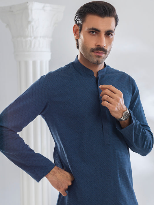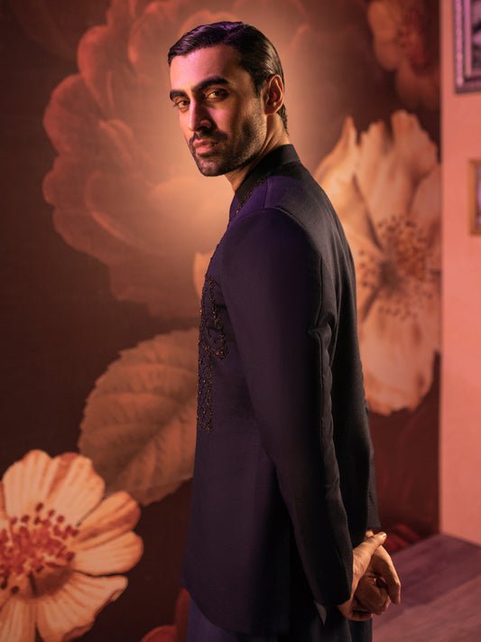 Navy Blue Blended Prince Coat - AL-PCS-063