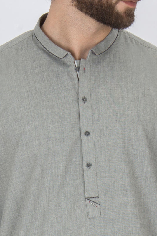 Ash Grey Blended Kameez Shalwar - AL-KS-2328