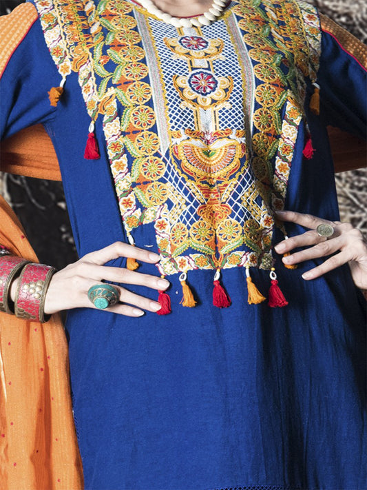 Royal Blue Khaddar 3Pc Stitched - AWP-178