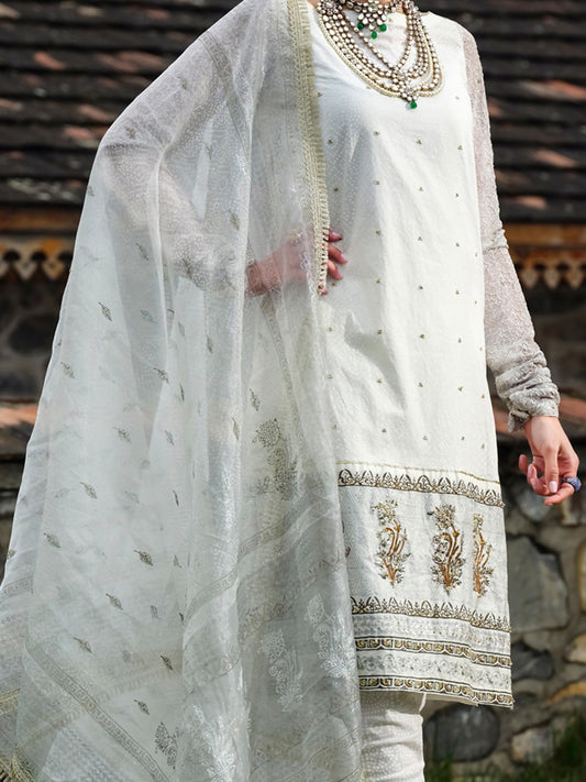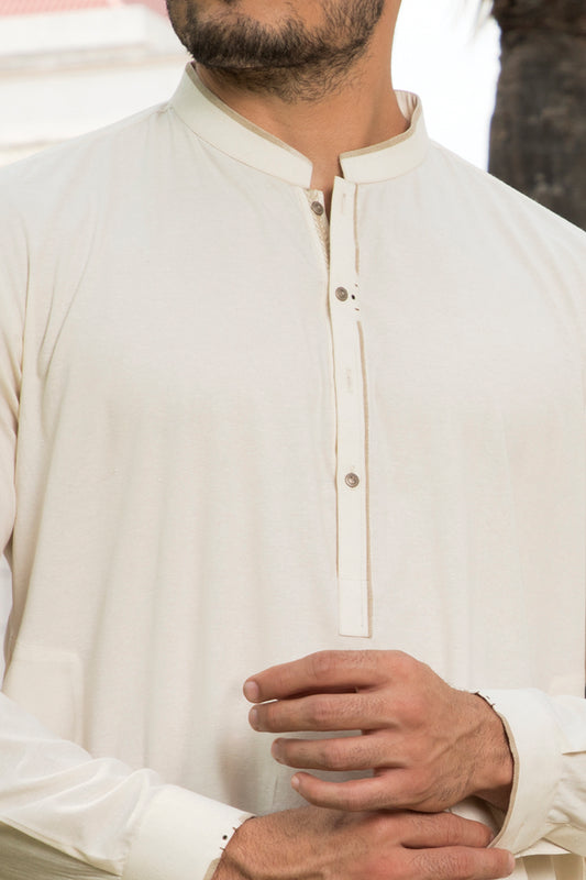 Off White Blended Kameez Shalwar - AL-KS-2345