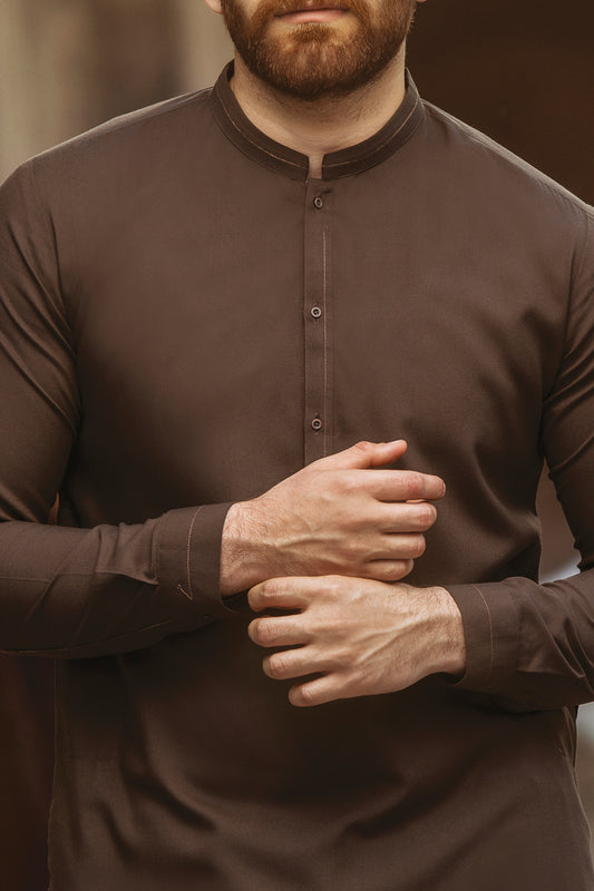Brown Cotton Kameez Shalwar - AL-KS-2371