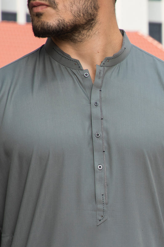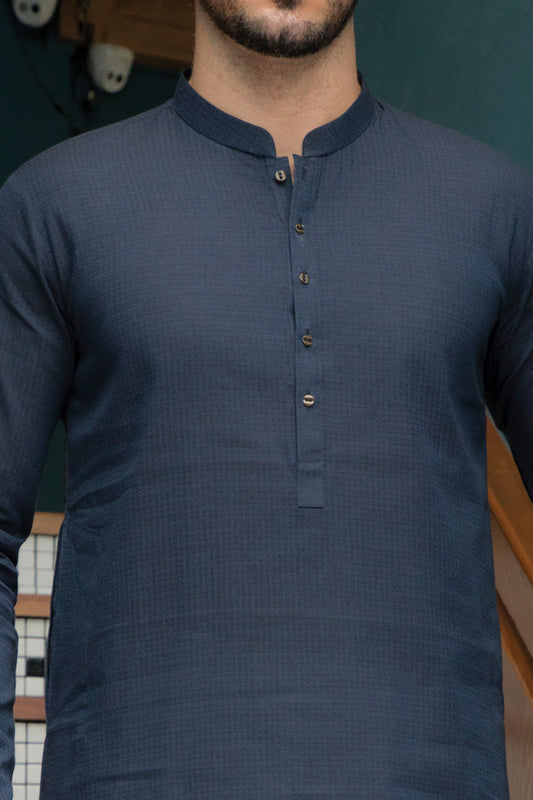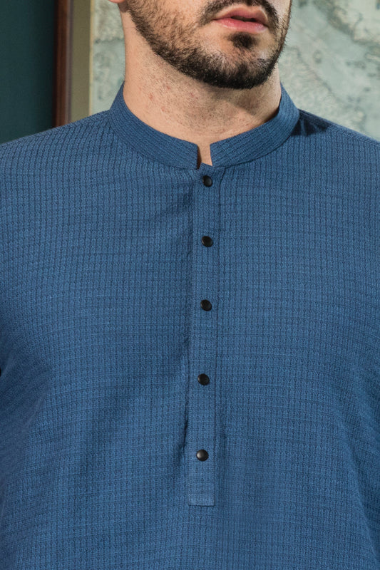 Sea Blue Blended Kameez Shalwar - AL-KS-2309