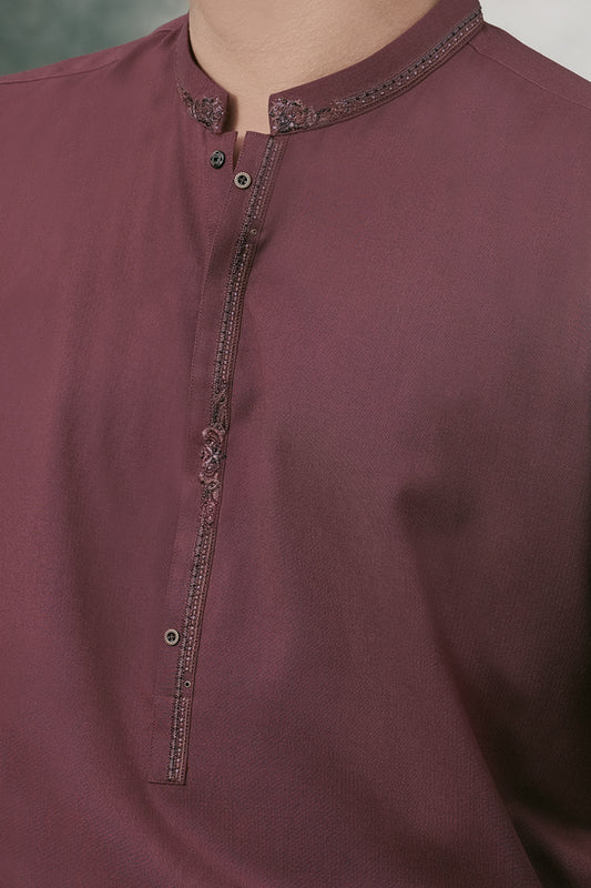Burgundy Blended Kameez Shalwar - AL-KS-2453