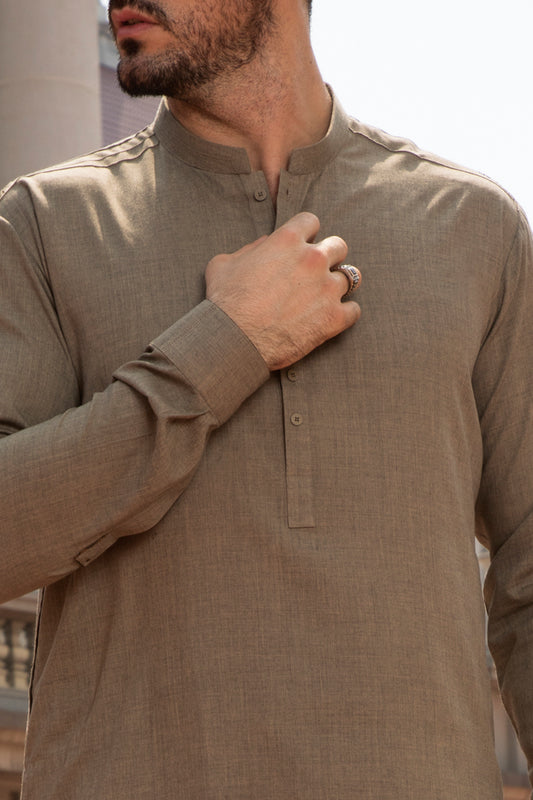 Ash Brown Blended Kameez Shalwar - AL-KS-2293