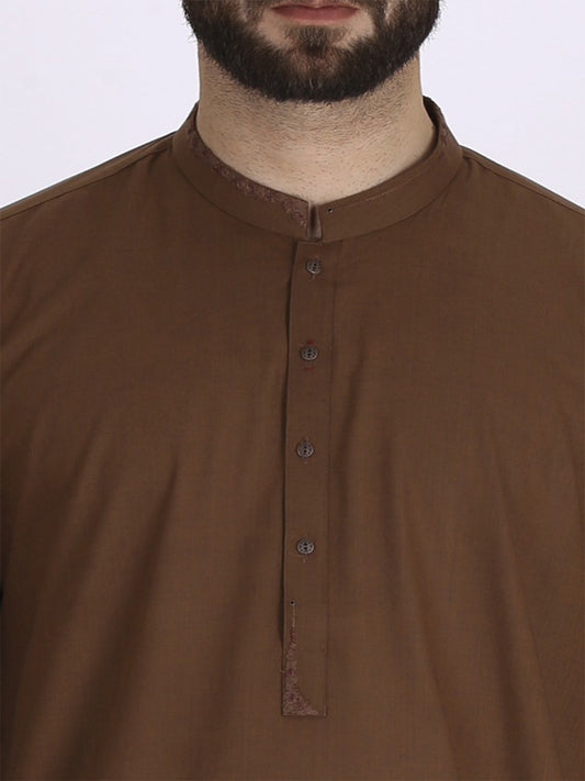 Brown Cotton Kameez Shalwar - ALWA-KS-075