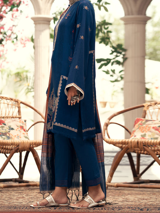 Navy Blue Yarn-Dyed Jacquard 3Pc Unstitched - AWP-3PS-558