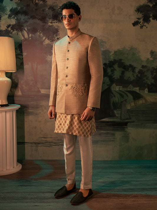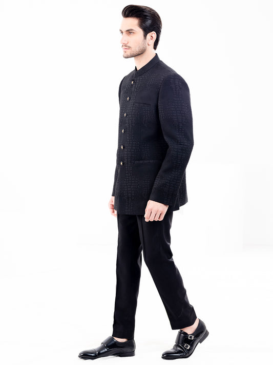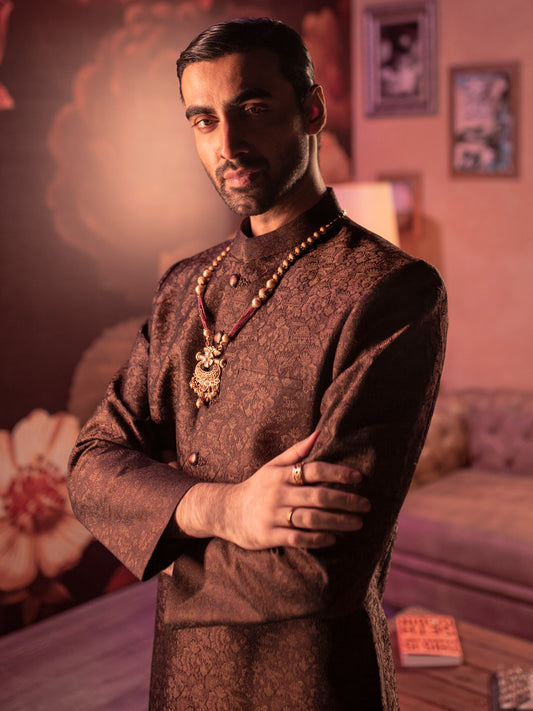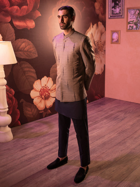 Dark Blue Blended Men Sherwani - AL-SW-149