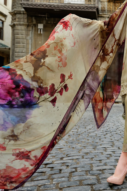 Natural Chiffon 3Pc Stitched - ALP-689