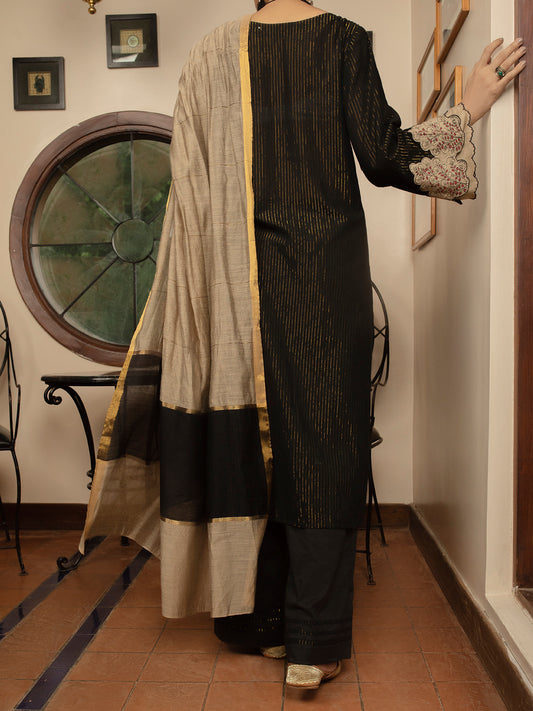 Black Slub Viscose Stitched 3Pc - AWP-3PS-442