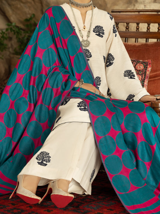 Off White Woolen 3Pc Unstitched - ALP-3PS-1313