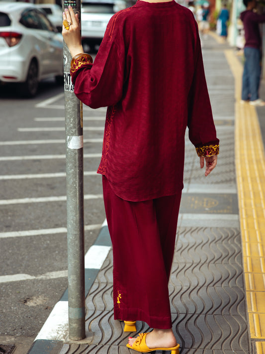 Maroon Dobby Jacquard 2Pc Stitched - ALP-2PS-LKS-1799