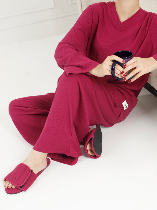 Magenta Knitted Co-Ord Set with Matching Slides - AWP-LKSFW-735