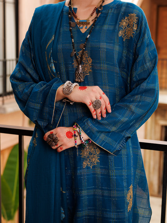 Teal Cotton Dobby 3Pc Stitched - ALP-3PS-1804