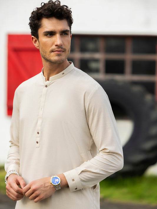 Beige Blended Kameez Shalwar - AL-KS-3064B