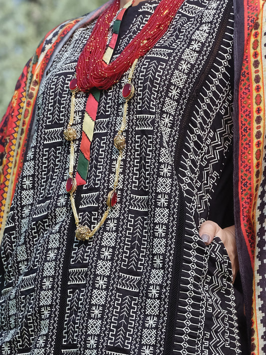 Black Cambric 3Pc Stitched - AWP-3PS-740A
