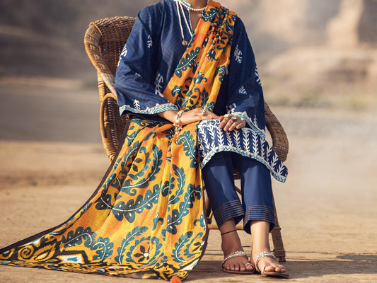 Blue Cambric 3Pc Unstitched - AWP-3PS-324