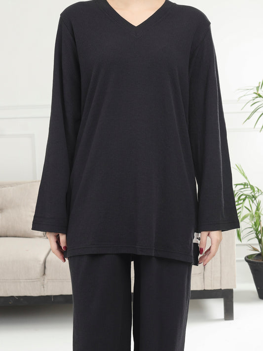 Black Knitted Co-Ord Set with Matching Slides - AWP-LKSFW-736