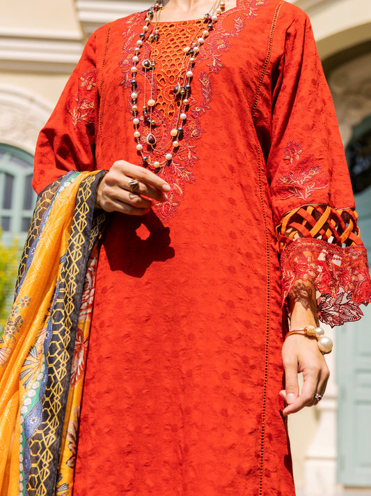 Red Jacquard 3Pc Unstitched - ALP-3PS-1861